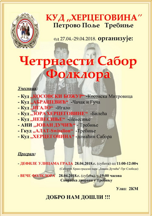 Поводом 43 годинa Фолклорног стваралаштва у Петрову Пољу-Требиње и 42 године рада друштва, КУД ,,Херцеговина,'' у периоду од 27. до 29. априла, по четрнаести пут за редом, организује сада већ традиционални Сабор Фолклора.