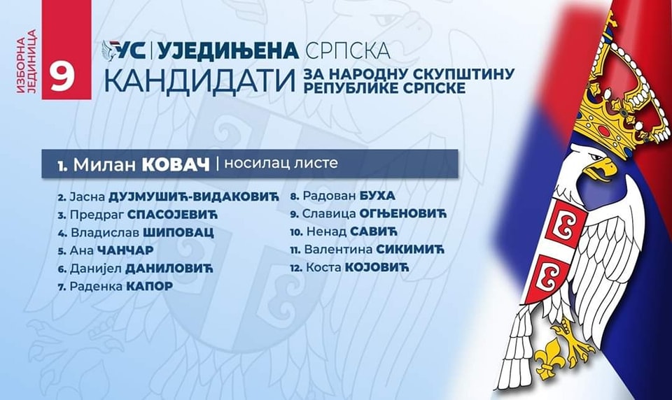 Милан Ковач, предсједник Градског одбора Требиње, носилац је кандидатске листе за ову изборну јединицу (ИЈ 9).