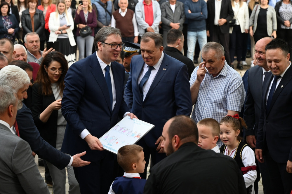 On je zahvalio predsjednicima Srbije i Srpske za posjetu ovoj hercegovačkoj opštini, navodeći da je to istorijski i veliki dan za Bileću.