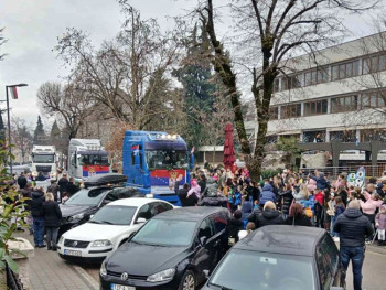 Svečano je na Badnji dan u Bileći. Više od pedeset kamiona, okićenih badnjacima i zastavama, uz sirene, prodefilovalo je ulicama grada. U koloni je i kamion