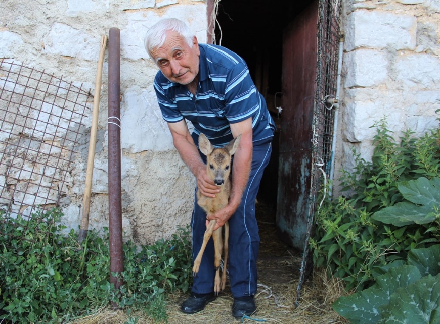 Милан Станковић из села Сопиља код Невесиња, има необичног љубимца – малог бамбија. Лане је пронашао недалеко од своје породичне куће почетком маја, када је ишао да бере печурке. Како објашњава, било је у једном грму и није могло бити старије од дан – два.