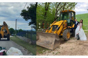 Neobično vjenčanje u Mostaru: Došao po mladu bagerom (VIDEO)