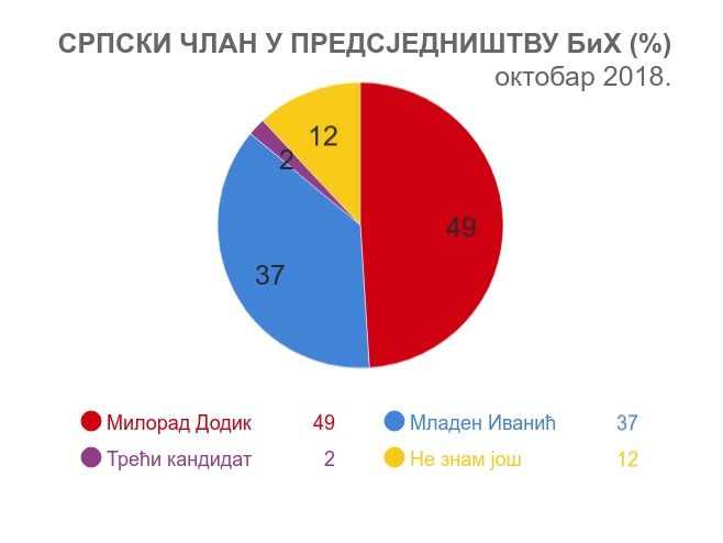 Потпуно независно истраживање јавног мњења Агенције "Плус медија" из Бањалуке, рађено од 28. септембра до 2. октобра, на узорку од 6.800 испитаника, показује да, код већ опредијељених бирача, а таквих је 88 одсто, Милорад Додик води у односу на Младена Иванића, у омјеру 57:43. Додик ће, укупно, добити повјерење 49, а Иванић 37 одсто бирача.