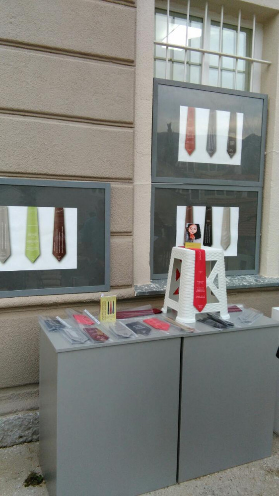 На изложби је представљено 50 АФОКРАВАТА. Ријеч је о афоризмима исписаним на краватама разних боја. Афоризми су на свакој кравати исписани на српском, енглеском и руском језику.