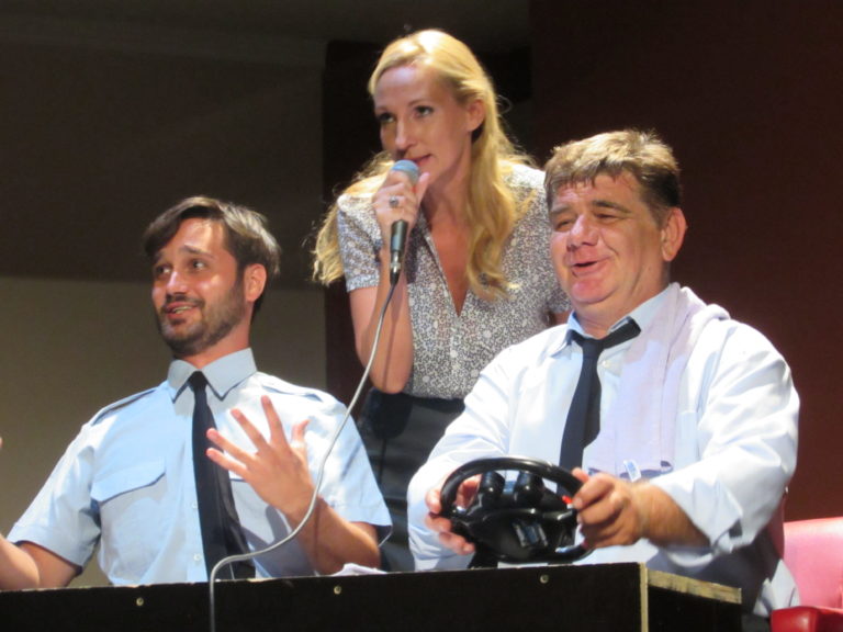 U pozorišnoj sali Kulturnog centra Trebinje sinoć je odigrana predstava „Korak u budućnost“, autorski projekat muzičara, pisca i glumca Nenada Jankovića, poznatijeg kao Dr Nele Karajlić, i književnika Vuleta Žurića.
