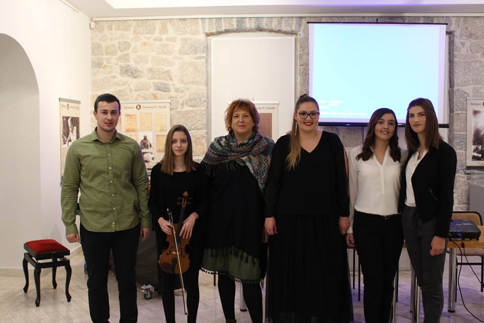 U muzičkom dijelu programa nastupile su Maja Petijević na klaviru i Katarina Janković na violini, dok su Stefanove stihove kazivale učenice Centra srednjih škola Anastasija Spremo i Milica Salata.