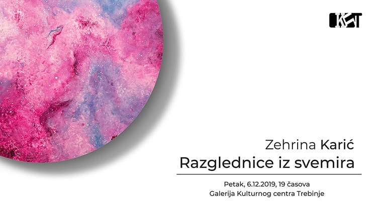 Kulturni centar Trebinje večeras u galeriji ustanove organizuje izložbu slika akademske slikarke Zehrine Karić pod nazivom „Razglednice iz svemira“.