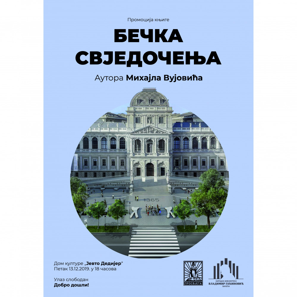 Narodna biblioteka "Vladimir Gaćinović" i SPKD "Prosvjeta" Bileća, organizuju promociju knjige Mihajla Vujovića "Bečka svjedočenja".