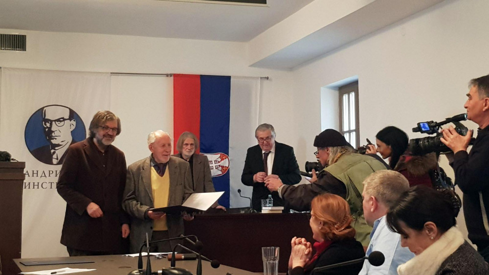 - Direktor Andrićevog instituta u Andrićgradu Emir Kusturica uručio je danas u Andrićgradu značajnu intrenacionalnu "Veliku nagradu Ivo Andrić" ovogodišnjim laureatima - Dragoslavu Mihailoviću i Guzelj Jahini.
