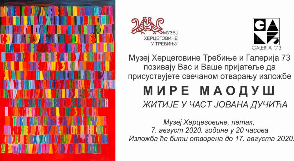 очетком августа месеца, у термину од 7, до 17. августа, са почетком у 20 часова у Музеју Херцеговине Требиње, биће свечано отворена изложба радова академске сликарке Мирјане Мире Маодуш.