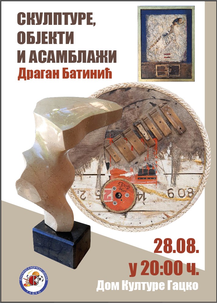 U petak, 28. avgusta, u 20 časova u Domu kulture u Gacku biće otvorena izložba „Skulpture, objekti i asamblaži“, hercegovačkog umjetnika Dragana Batinića.
