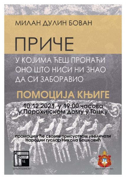 У петак, 10. децембра у 19.00 часова, у Парохијском дому у Гацку биће одржана промоција књиге Милана Бована “Приче у којима ћеш пронаћи оно што ниси ни знао да си заборавио”.