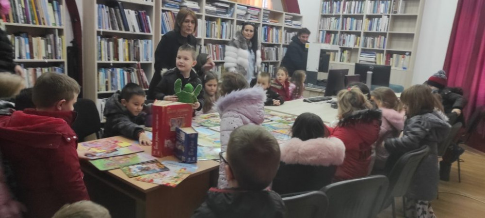 Дјеца старијих васпитних група вртића „Наша радост“ посјетили су библиотеку и са библиотекарком Зорицом Гњато читали приче и бајке које су сами изабрали.