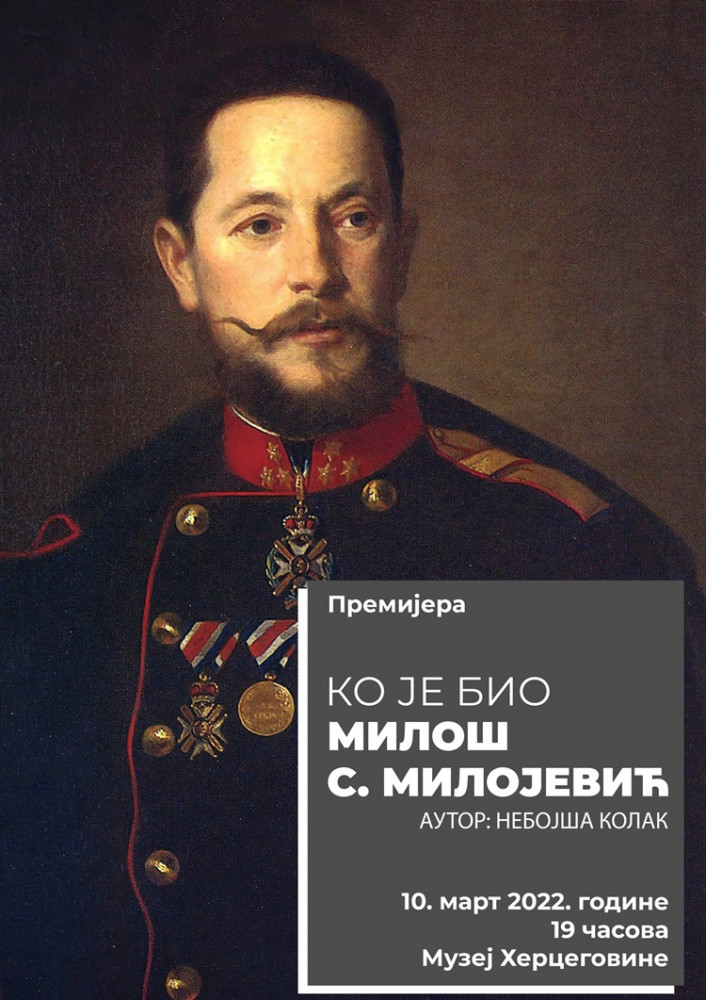 U Galeriji Muzeja Hercegovine u Trebinju, premijerno će biti prikazana reportaža „Ko je bio Miloš Milojević (16. oktobar 1840 – 24. juni 1897.)“, autora Nebojše Kolaka.