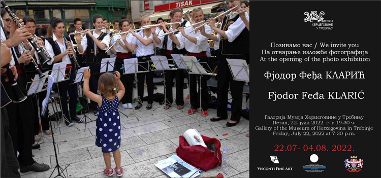 U Galeriji Muzeja Hercegovine u Trebinju sutra (petak, 22. Jula) biće upriličeno otvaranje izložbe fotografija Fjodora Feđe Klarića , vizuelnog umjetnika, hroničara i fotografa „Slobodne Dalmacije" iz Splita.