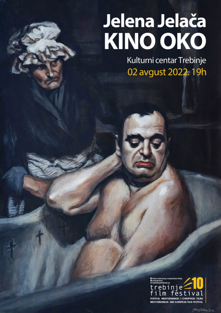 У оквиру пратећег програма десетог Фестивала медитеранског и европског филма, у галерији Културног центра Требиње, вечерас у 19 часова биће отворена изложба слика Јелене Јелаче, академског сликара из Београда под називом “Кино око”.