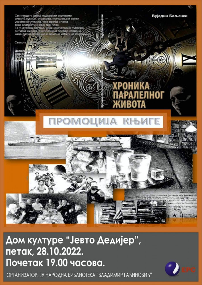 Билећа- Народна библиотека ''Владимир Гаћиновић'' организује промоцију романа ''Хроника паралелног живот'' аутора Ненада Вујовића.
