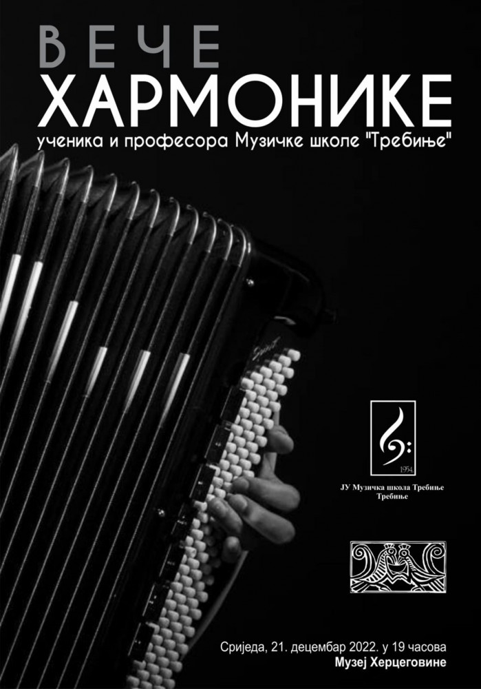 Publici će se predstaviti profesori i učenici Muzičke škole Trebinje, sa odsjeka za harmoniku.