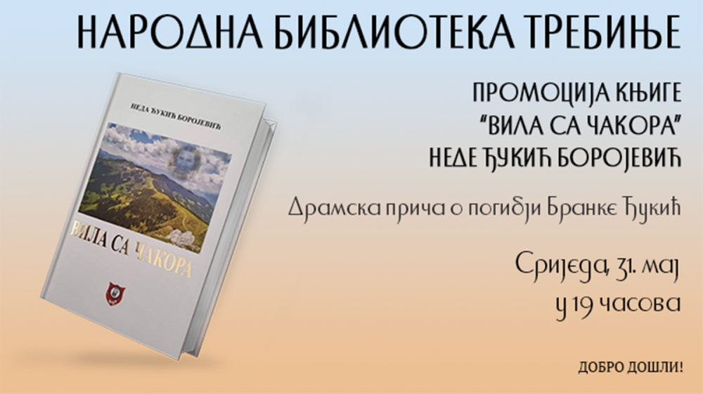 Narodna biblioteka Trebinje večeras organizuje promociju knjige „Vila sa Čakora“ autorke Nede Đukić Borojević.