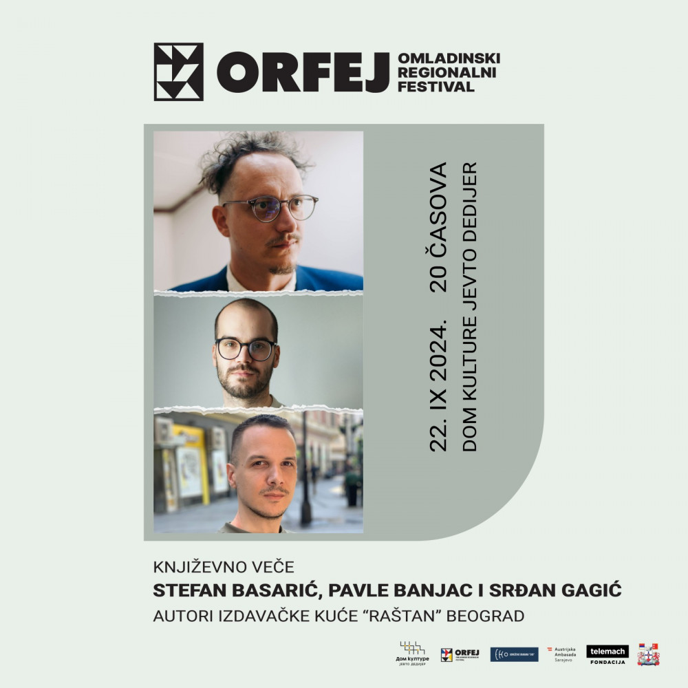 U nedjelju, 22. septembra, u 20 časova, u maloj sali Doma kulture predstaviće se mlada izdavačka kuća “Raštan” iz Beograda. Raštan izdavaštvo čini mladi tim urednika i autora i za kratko vrijeme postali su zapažena izdavačka kuća, koja otvara prostor mladim autorima. U Bileći će nam se predstaviti Srđan Gagić, pjesnik i urednik, Stefan Basarić, pjesnik, i Pavle Banjac, pjesnik.