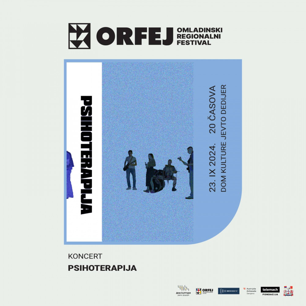 U ponedjeljak, 23. septembra, u 20 časova, Orfej donosi još jedan rok koncert. Ovoga puta u pitanju je mlada rok grupa “Psihoterapija” iz Ljubinja.