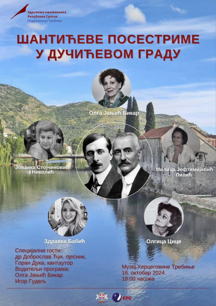 Udruženje književnika Republike Srpske, podružnica Trebinje, u Muzeju Hercegovine u srijedu, 16. oktobra, organizuje poetsko-muzičko veče pod nazivom „Šantićeve posestrime u Dučićevom gradu“.