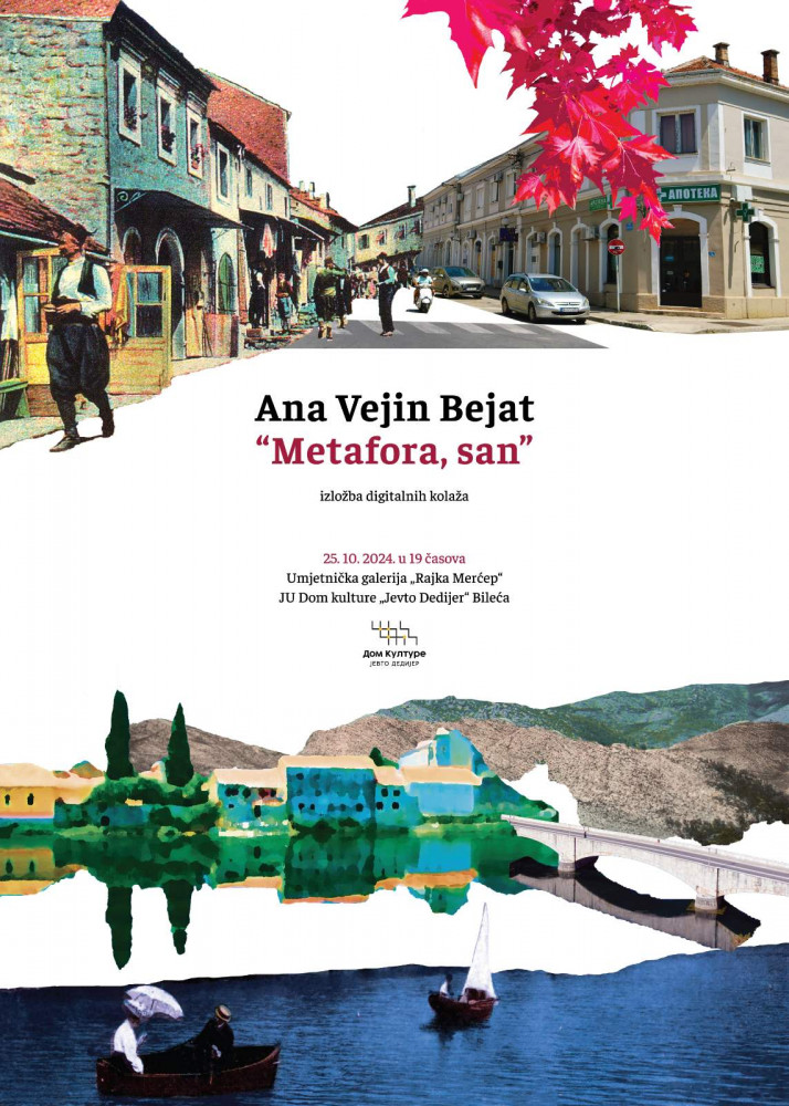 U petak, 25. oktobra, u 19 časova, u Umjetničkoj galeriji „Rajka Merćep“, Dom kulture Bileća, biće otvorena izložba digitalnih kolaža Ane Vejin Bejat.
