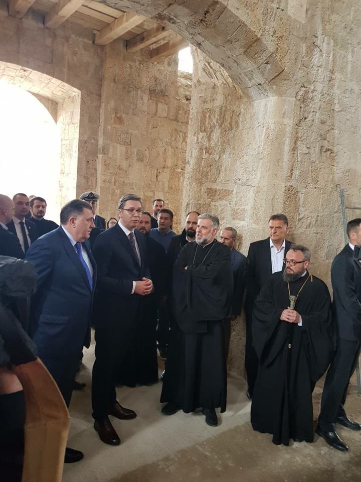 Predsjednik Republike Srpske Milorad Dodik, predsjednik Srbije Aleksandar Vučić i Njegovo preosveštenstvo episkop zahumsko-hercegovački i primorski Grigorije posjetili su mjesto izvođenja radova na Sabornoj crkvi Svete trojice u Mostaru.