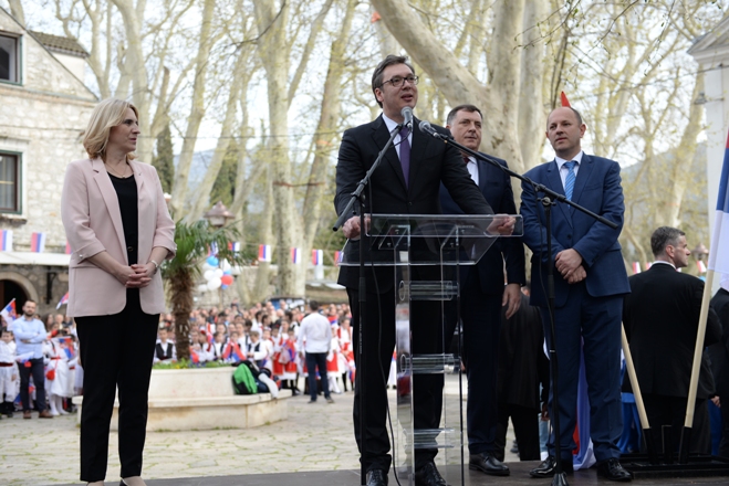 Vučić je obraćanje završio riječima kralja Aleksandra koji je, prilikom posjete Trebinju, rekao da je to grad heroja, mučenika i pjesnika.