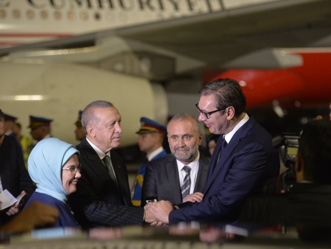 Predsjednik Turske Redžep Tajip Erdogan doputovao je sinoć oko 21.20 na beogradski aerodrom "Nikola Tesla", gdje ga je, kao domaćin, dočekao predsjednik Srbije Aleksandar Vučić.