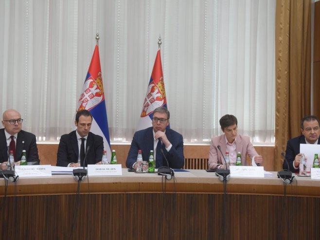 U Palati Srbija održava se sjednica Vlade Srbije na kojoj se razgovara o aktuelnoj situaciji na Kosovu i Metohiji, a kojoj na poziv premijerke Ane Brnabić, prisustvuje i predsjednik Srbije Aleksandar Vučić.