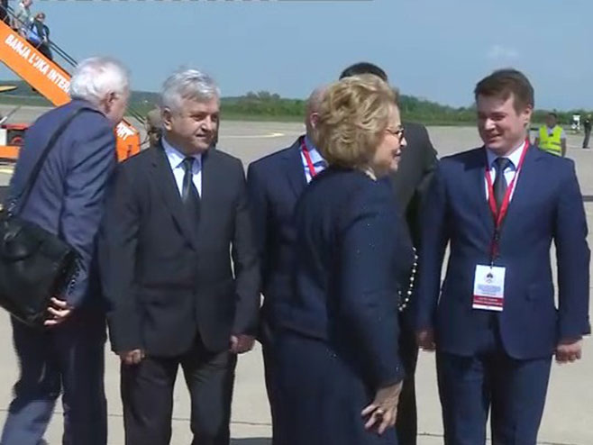 Руску делегацију је на аеродрому Маховљани дочекао предсједник Парламента Српске Недељко Чубриловић, а Валентину Матвијенко ће испред Палате Републике дочекати предсједник Милорад Додик, након чега слиједи разговор двоје званичника.