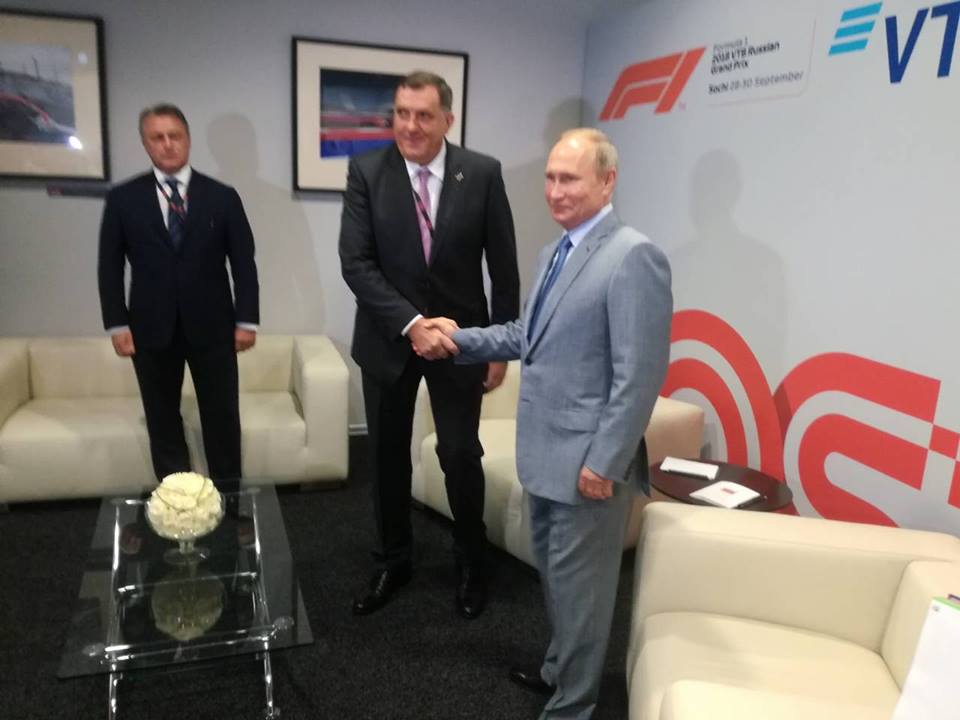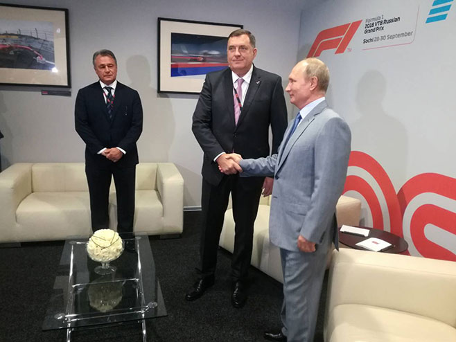 Претходно је предсједник Српске, заједно са руским предсједником, пратио трку Формуле 1 за Велику награду Русије.