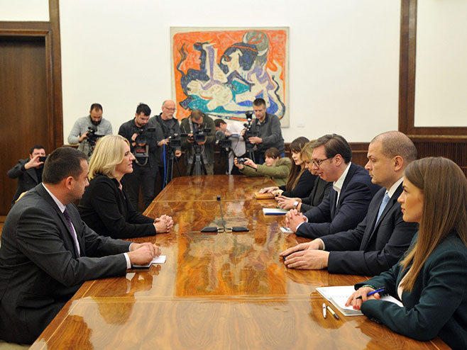 Предсједникца Републике Српске Жељка Цвијановић захвалила је предсједнику Србије Александру Вучићу, на почетку састанка у Београду, за свијест коју показује према важности опстанка Републике Српске, те поручила да ће у њој имати доброг сарадника.