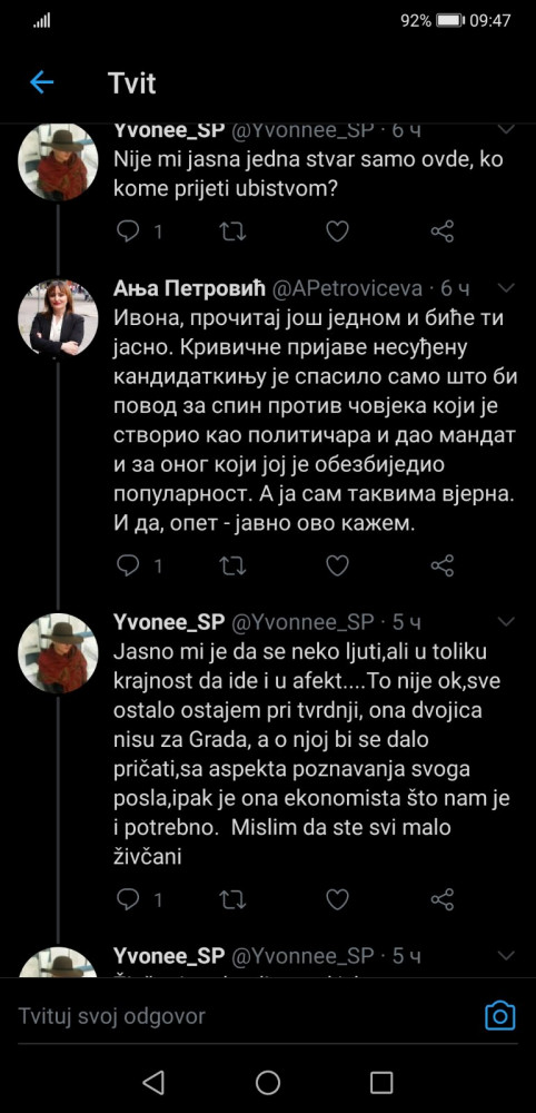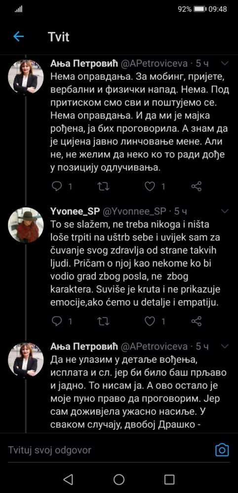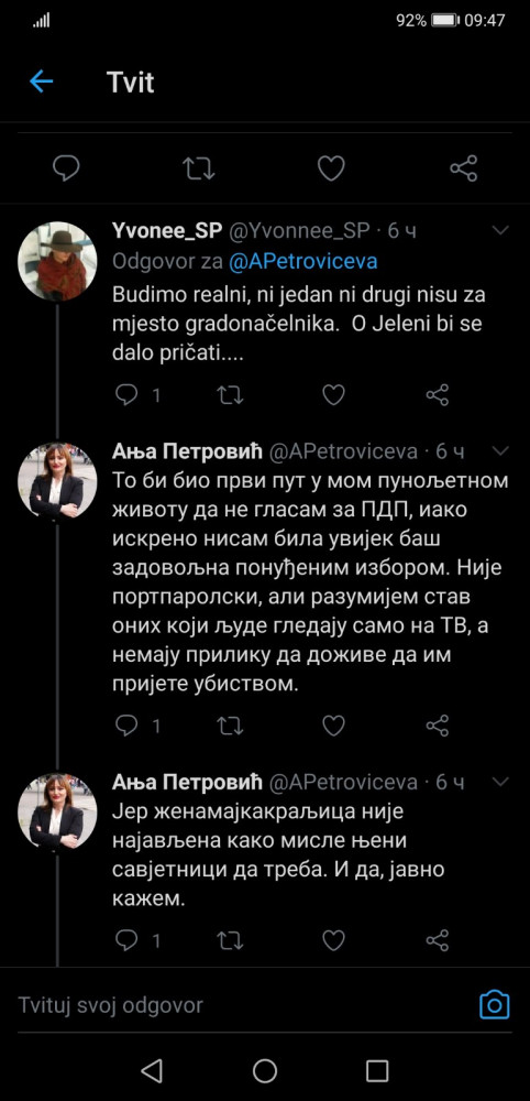 Portparol PDP-a Anja Petrović objavila je na Tviteru da dobila prijetnje smrću.