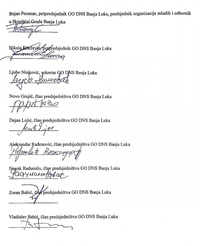 Из Предсједништва ГО ДНС Бањалука раније су иступиле Маја Јовановић и Божана Јокић, Огњен Тадић је искључен, док је Марко Аћић смијењен.