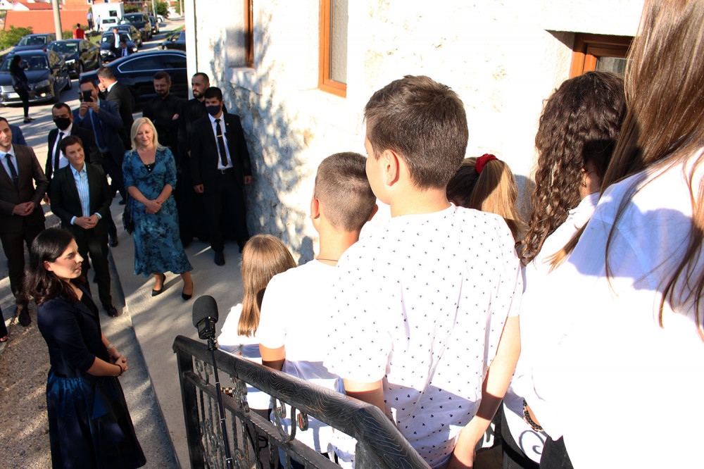 ”U vreme mog mandata kao predsednice Vlade i od kad sam ušla u Vladu Srbije, to mi je jedan od najlepših i najemotivnijih dana koje sam imala. Stojim pri onome što sam tada rekla, a to je da ćemo učiniti sve što možemo da kvalitet života ljudi, Srba koji su tamo ostali uprkos svemu onome što se desilo u poslednjih 100 godina, bude bolji. Mi ćemo učiniti sve što možemo da pomognemo, da podržimo, finansiramo projekte lokalne infrastrukture, izgradnju naših crkava, pomoć našim kulturno-umetničkim društvima, školama, Prosveti itd. I pozdravite molim vas mnogo od mene oca Radivoja Krulja i recite da sam pričala sa predsednikom Vučićem i o njemu i o Srpskoj pravoslavnoj crkvi i o hramu u Mostaru da vidimo kako možemo da pomognemo da se taj važan velelepni objekat završi”, kazala je predsjednica Vlade.