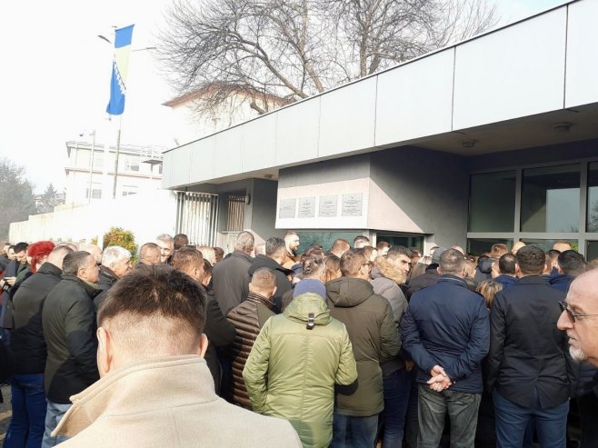 Pred zgradom Suda i Tužilaštva BiH su predstavnici organizacija proisteklih iz Odbrambeno-otadžbinskog rata, nosioci javnih funkcija, kao i predstavnici Srba iz FBiH.