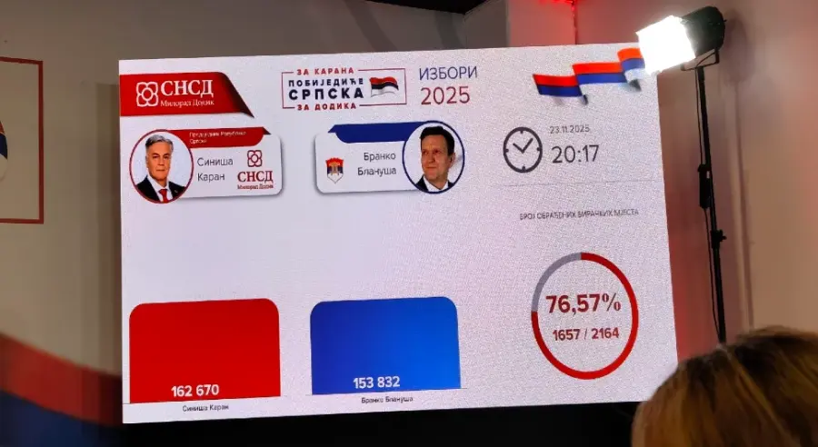 На основу 76,75 одсто обрађених бирачких мјеста, наш кандидат Синиша Каран има око 9.000 гласова више од СДС-овог Бранка Блануше, рекао је портпарол СНСД-а Радован Ковачевић.