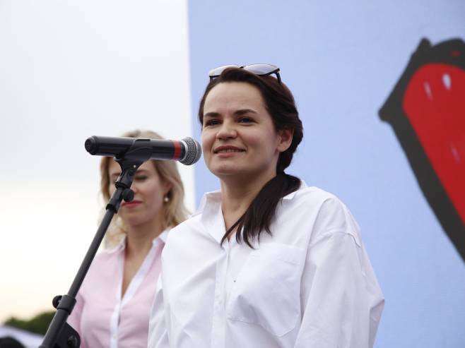 Тихановска, бивша наставница енглеског језика, постала је један од лидера опозиције. Она је напустила Бјелорусију прошле седмице рекавши да је то учинила због безбједности своје дјеце, али је убрзо почела да објављује поруке са позивима на наставак протеста.