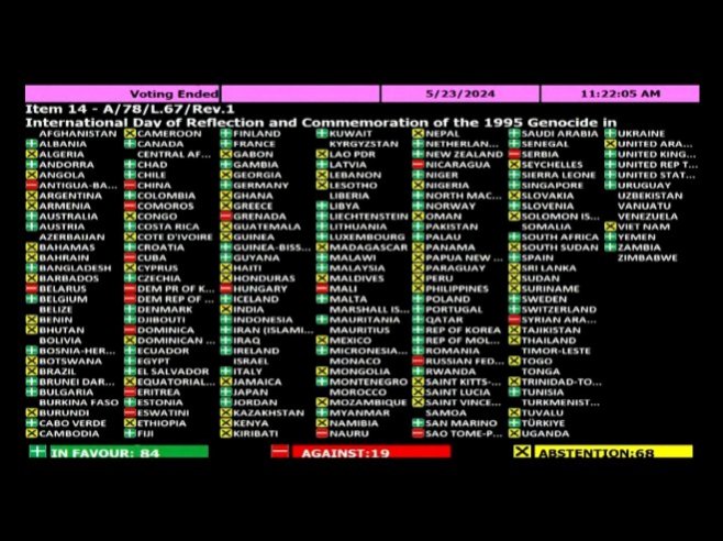 Generalna skupština Ujedinjenih nacija usvojila je rezoluciju o Srebrenici, iako je više bilo protiv i uzdržanih.