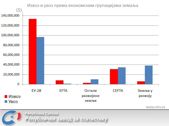 Вриједност извоза је била 181,117,000 долара, а увоза 179,853,000 долара, подаци су Републичког завода за статистику Српске.