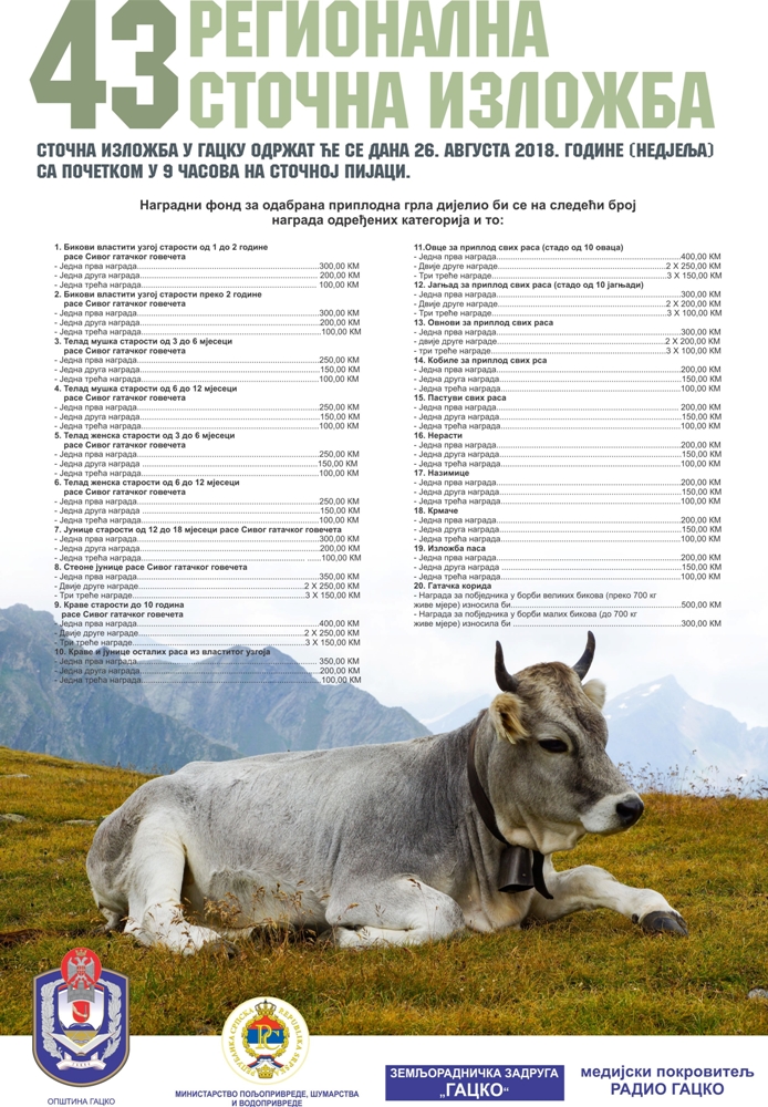 Општина Гацко је обезбиједила вриједне награде за најбоља грла у укупном износу од 13.950,00 КМ.