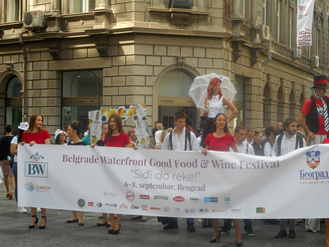 Festival je počeo danas, vinskim defileom u centru Beograda tokom koga su dobošari, plesači, trubači i folklorna društva najavile manifestaciju.