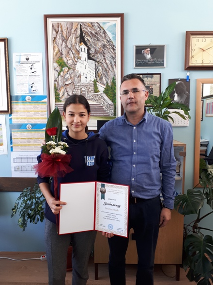 Darko Jegdić je ispred škole i nastavničkog vijeća čestitao Heleni i njenom treneru na postignutim sportskim rezultatima u 2017. godini, kao i na izboru za sportistu godine grada Trebinja.