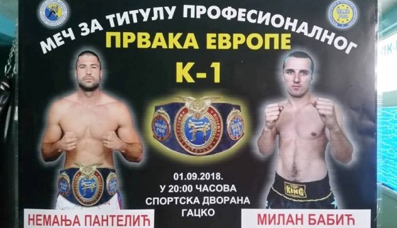 U sportskoj dvorani u Gacku, u subotu, 1. septembra, održaće se meč za titulu profesionalnog prvaka Evrope u disciplini K1, između Milana Babića - člana KBK „Tigar“ Gacko i Nemanje Pantelića iz kluba „Palmini tigrovi“ Jagodina.