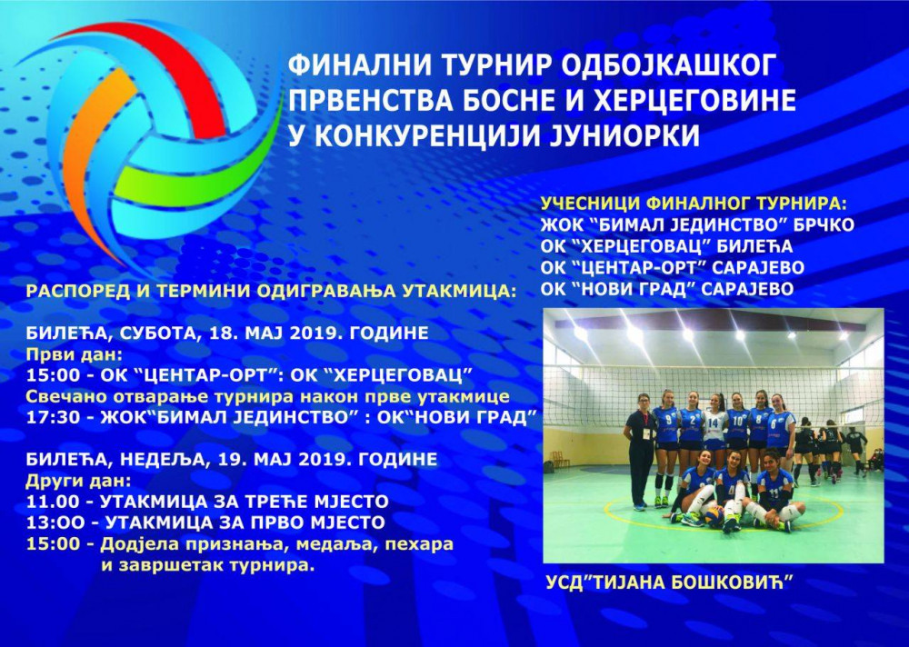 Finalni turnir u konkurenciji juniorki igra se u subotu (18.05.2019.) i nedjelju (19.05.2019.) u Univerzalnoj sportskoj dvorani „Tijana Bošković“ u Bileći.