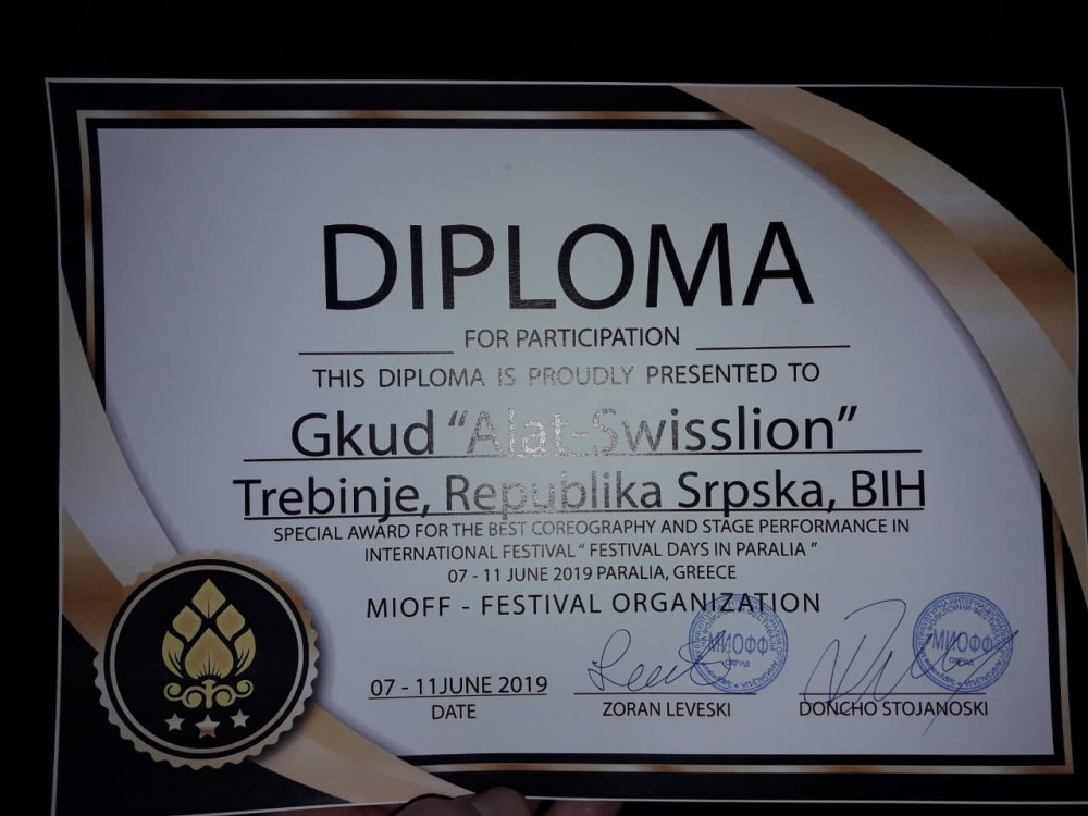 Gradsko kulturno-umjetničko društvo "Alat" učestvovalo je na internacionalnom festivalu u organizaciji MIOFF-a koji se održava od 07-11. juna u Grčkoj - u gradu Paralija. Na festivalu učestvuje 30-ak kudova iz Rusije, Bugarske, Ukraine, Crne Gore, Poljske, Makedonije, Republike Srpske, Grčke i Rumunije.