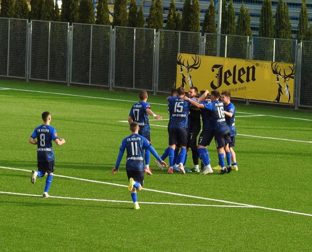 Фудбалери Kрупе савладали су ФK Радник Бијељина резутатом 4:3, након бољег извођења једанаестерца и пласирали се у полуфинале најмасовнијег такмичења у Републици Српској. Током 90 минута није било погодака, па се приступило извођењу једанаестераца у којима је Kрупа била боља и на крају заслужено се пласирала у сљедећу рунду такмичења у Kупу-у РС "Др Милан Јелић".