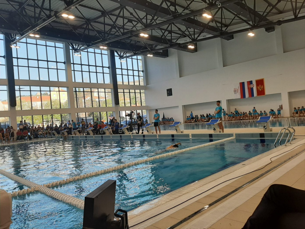 Utakmica vaterpolo reprezentacija Srbije i Crne Gore u novootvorenom bazenu u Trebinju je pravi spektakl.